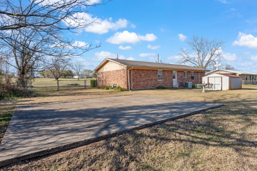 Charming 3 bedroom, 1.5 bath home situated on an oversized, tree-shaded lot. This well-built property offers an open concept living, kitchen, and dining area, making it ideal for everyday living and entertaining. Recent updates include a new roof and window screens installed in 2025. The large fenced backyard provides plenty of space for outdoor activities and features a storage building plus an additional concrete slab ready for a future structure. Home also includes a 1-car garage and concrete driveway. Conveniently located just a short drive to Old City Lake Park, featuring a playground, basketball court, pickleball courts, fishing pier, and boat launch, as well as Cherry Creek Park with multiple playgrounds and walking trails. Also located near the famous First Monday Trade Days in Canton. Great opportunity as a starter home, retirement property, or investment.