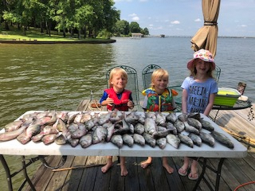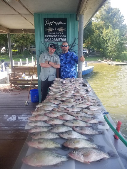 Crappie are still doing good. They have slowed down just a little bit but we still have been able to pull very good numbers on our trips lately. We're fishing brush tops in 8-15 ft of water and bridge columns. It's easy fishing that anyone can do.