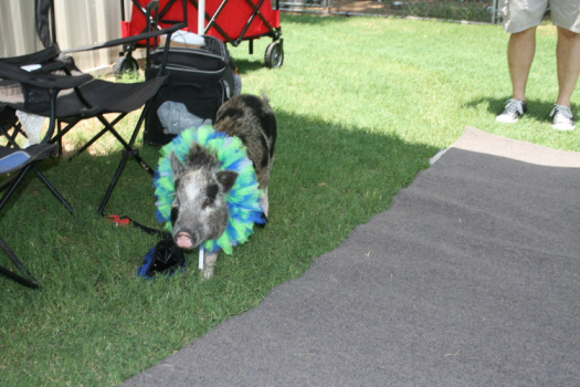 Despite the heat, many visitors turned out to see Norman the pig, the organization's mascot Skeeter, the adoptable animals and to visit with vendors that provide services for animals. Vistors competed for prizes such as tickets to the Dallas Zoo and munched on hot dogs.