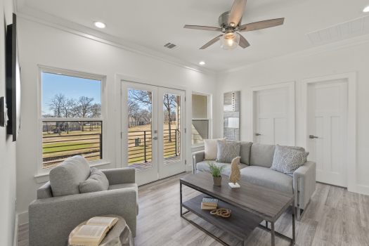 Golf course home overlooking the #15 tee box in prestigious Pinnacle Country Club with 18 hole golf course, restaurant, pool, pickle ball and tennis courts and fitness center. Home is as gorgeous as the view with spacious open concept living with soaring ceilings, big windows, wood look tile floor and linear electric fireplace. In addition to island seating around the kitchen there is plenty of room for a large dining table. Kitchen boasts custom cabinets, quartz countertops and stainless steel appliances. Primary bedroom with golf course views and stunning bath with soaking tub, large walk in shower, separate vanities and walk in closet with built ins. Bonus room upstairs offers additional living space or would make a great game room and opens to a balcony with sweeping golf course views. Main floor office with closet could be used as a 5th bedroom. Guard gated community. Buyer transfer fee of .002% at closing. Seller is a licensed real estate agent in Texas.