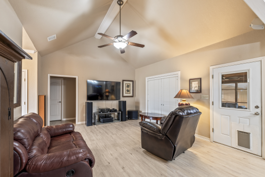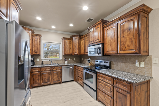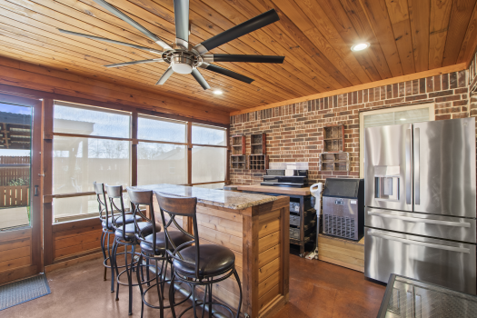 Meticulously maintained single-story 3-bedroom, 2-bath home with a dedicated office, situated on 1.5 lots in Mabank, approximately one hour from both Dallas and Tyler. Enjoy exceptional outdoor living with an approximately 400 sq ft screened porch with full concrete flooring, built-in bar, refrigerator, and ice maker--perfect for year-round entertaining. The fully fenced backyard features a cedar privacy fence, French drain system, established landscaping, two powered storage-tool sheds, and a gazebo with a concrete pad--ideal for grilling and hosting gatherings. An extra-wide driveway provides ample parking, and concrete walkways enhance accessibility throughout the property. An additional half corner lot offers space suitable for a 30x40 workshop (buyer to verify). Inside, the home offers 1,848 sq ft with a split-bedroom floor plan and a spacious living area with vaulted ceilings. The kitchen features wood cabinetry, granite countertops, stainless steel appliances, and a new Bosch dishwasher. Crown molding accents the main living, kitchen, and dining areas, while newer luxury vinyl plank flooring runs throughout the main living spaces. The primary suite includes an updated ensuite bath with tile flooring, granite countertops, a separate soaking tub, and a large glass-enclosed tile shower. A front-facing office provides flexible space for work or hobbies. Large utility room with sink. Attached two-car garage with attractive stone and brick exterior detailing. Additional upgrades include owned solar panels, a whole-home Generac generator, and a 250-gallon propane tank servicing the generator. Conveniently located within walking distance to Central Elementary and Historic Downtown Mabank with local shopping, restaurants, and Mabank's Food Truck Yard offering live music and dining options.
