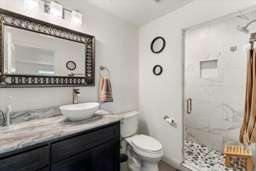 QUALITY BUILT WATERFRONT HOME ON TWO WATERFRONT LOTS BUILT IN 2020! THIS 3 BEDROOM, 2 1/2 BATH IS APPROX 2454 SQFT OF MODERN, LAKE DESIGN. HAS OPEN FLOOR PLAN WITH WALLS OF GLASS ON WATERSIDE. BEAUTIFUL CHEFS' KITCHEN WITH GAS RANGE, DOUBLE OVEN AND HUGE ISLAND ALL COVERED IN PRETTY GRANITE. SOARING CEILING IN LIVING, MASTER DOWNSTAIRS WITH ELEGANT MASTER BATH. LARGE 3 CAR GARAGE WITH BUILT INS & ENHANCED 400 AMP ELECTRIC, LOTS OF CONCRETE FOR PARKING & PLENTY OF ROOM FOR EXPANSION WITH 2ND LOT. NO POA. CLOSE TO LONESTAR MARINA.